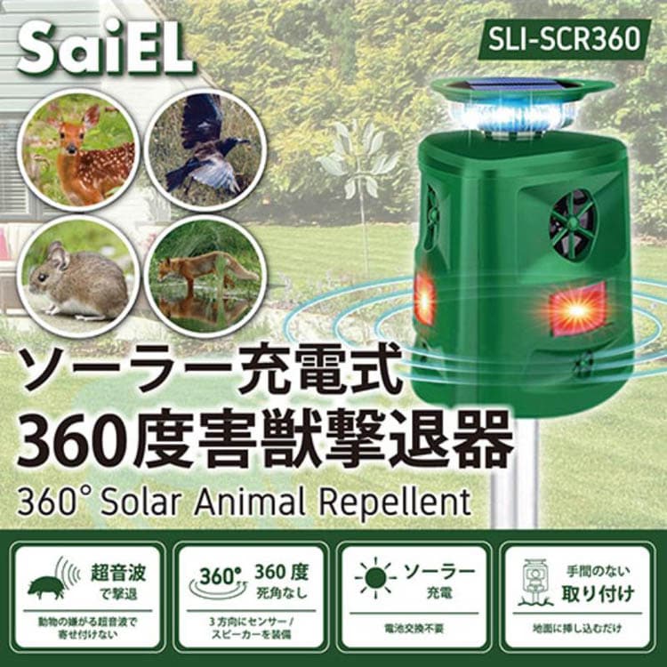 SaiEL ソーラー充電式 360度害獣撃退器 超音波 (1台)