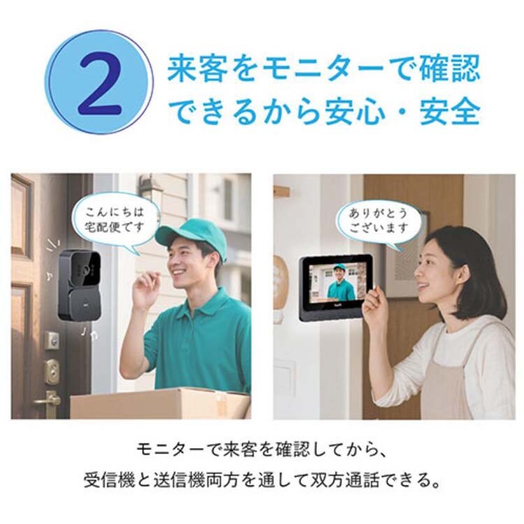 ●配線工事不要。取付かんたん。4.3インチの液晶付きインターホン