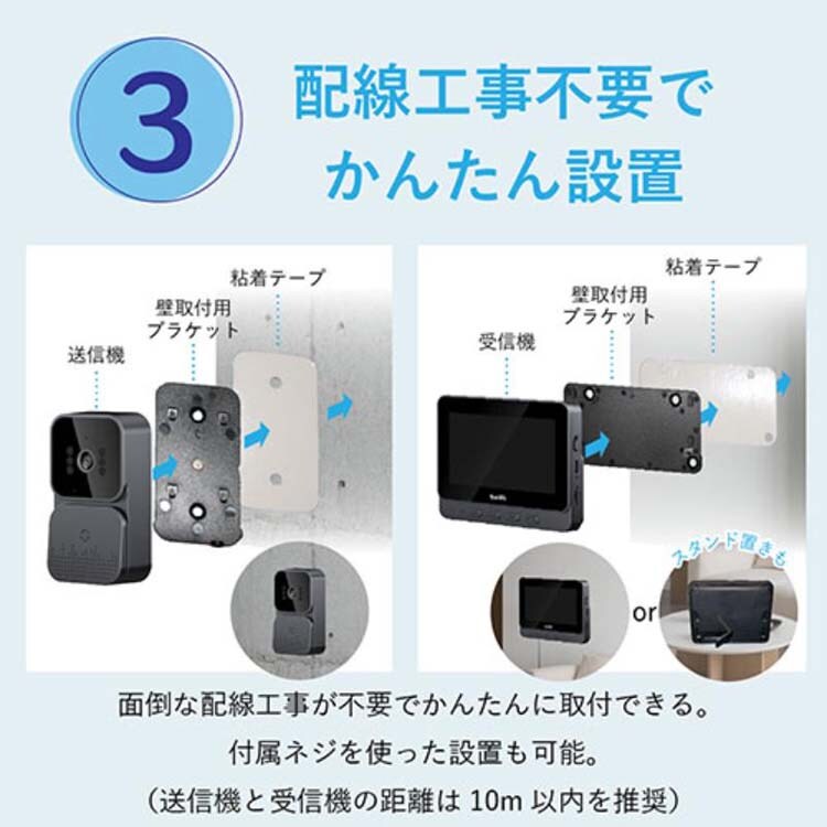 【SaiEL ワイヤレスモニターホン 配線工事不要・取付かんたん SLI-MH01の商品詳細】