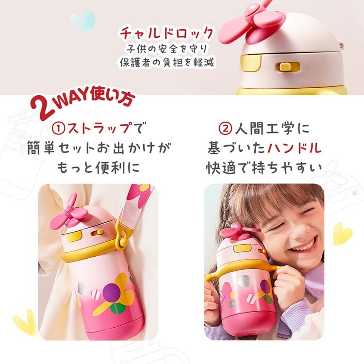 ●人間工学に基づいたハンドルで、小さな手でもしっかり持てますし、ストラップ付きでお出かけにも便利な2WAY仕様。