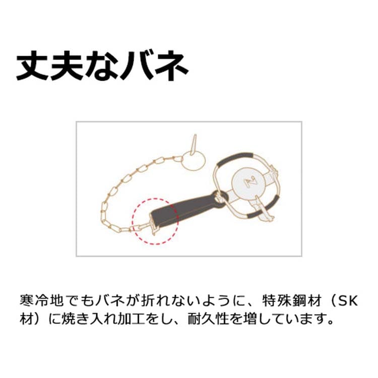 ●寒冷地でもバネが折れないように、特殊鋼材(SK材)に焼入れ加工をし、耐久性があります。