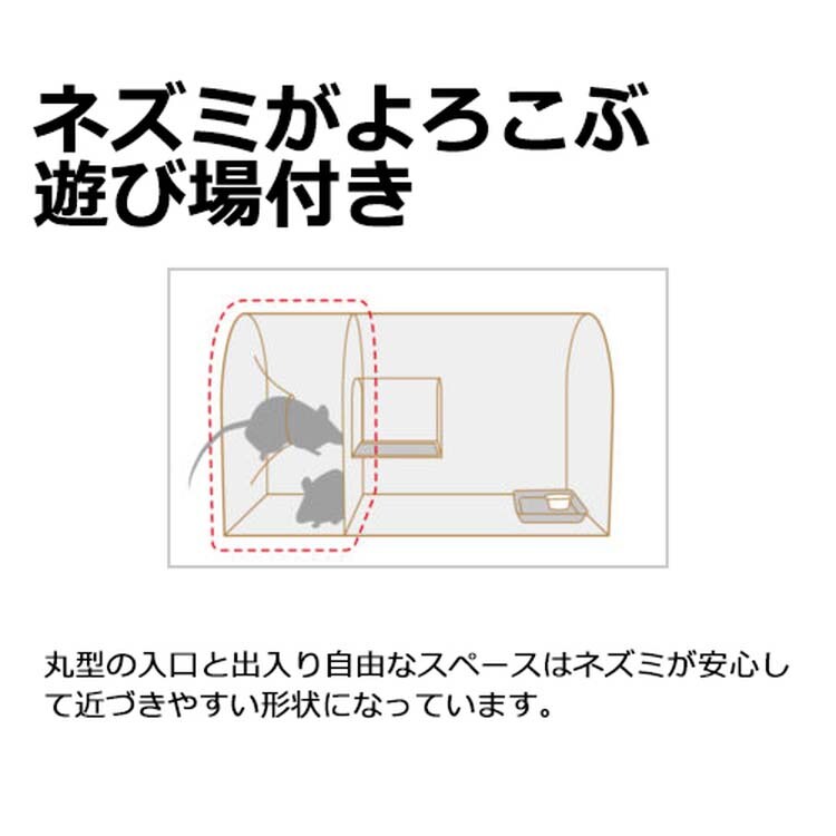 ●丸形の入口と出入り自由なスペースは、ネズミが安心して近づきやすい形状になっています。
