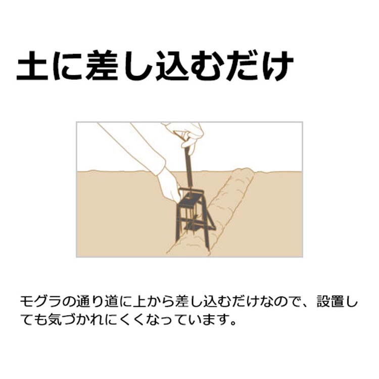 ●モグラの通り道に上から差し込むだけなので、設置しても気づかれにくくなっています。