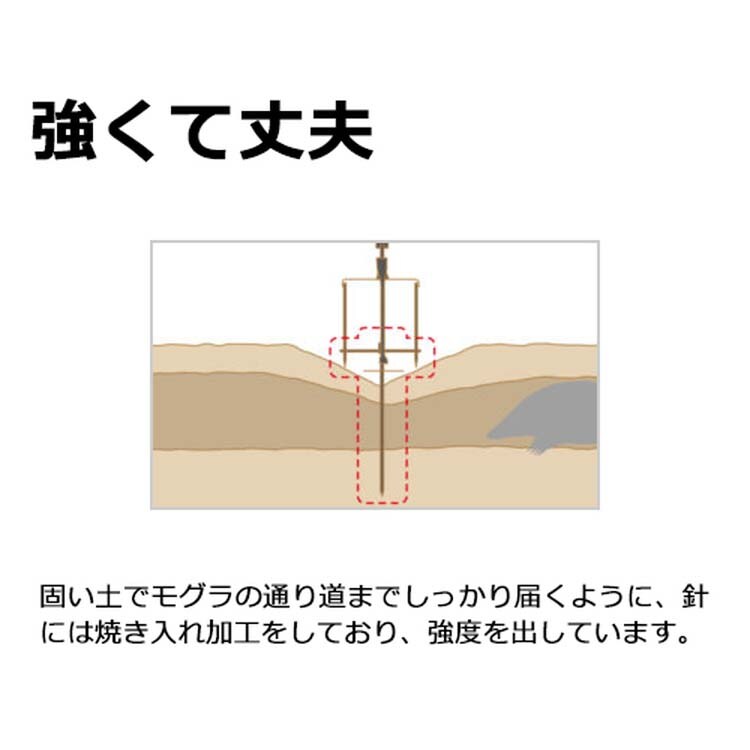 ●固い土でもモグラの通り道までしっかり届くように、針には焼入れ加工をしており、強度を出しています。