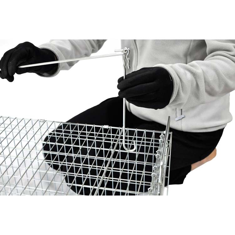 | ・サイズ:W200*H200*D610mm、フレーム高270mm ・メッシュサイズ:15*36mm ・線材径:2.0mm ・重量:2.3kg ・作動:吊りエサタイプ ・梱包形態:完成品 ・黒塗装仕上げ ・脱出防止装置(ロック)付き ・後扉開閉式 ・エサフック脱着式 ・材質:鉄(黒塗装仕上げ) |