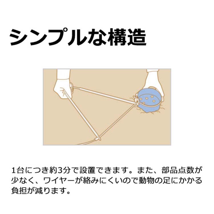 ●強力なバネを使用しているので作動が早く、動物の足を正確にくくります。