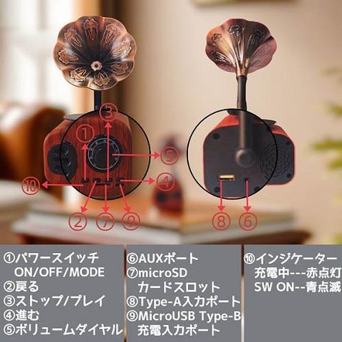 ●入力インターフェース:USB、AUX、MicroSD。