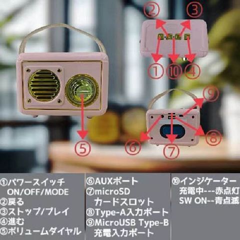 【ケイブライト レトロFM・Bluetoothスピーカー FT-BT20-PKの商品詳細】