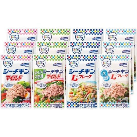 | 4902560022279 シーチキンSmileマイルド 50g 4902560022217 シーチキンSmileオイル不使用マイルド 50g 4902560022248 シーチキンSmileLフレーク 50g 4902560022224 シーチキンSmile水煮Lフレーク 50g 各3個 |