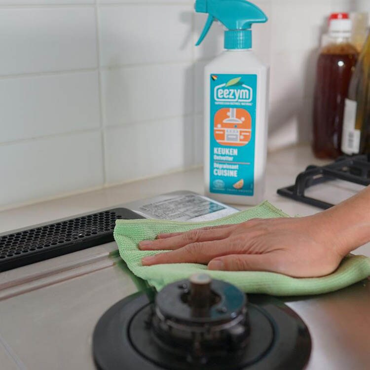 ※eezymをスプレーした後に水を吹きかけることで加水分解が進み、汚れが落ちやすくなります。