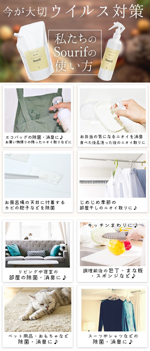 ●敏感肌の方、あかちゃん、小さなお子様でも安心の成分です。乳瓶や、おもちゃ、水筒の除菌に。安心してお使いいただけます。また、部屋干しの臭いや、おむつの臭いも瞬間消臭します。もちろん、愛するワンちゃんネコちゃん達が、舐めてしまった場合でも大丈夫です。