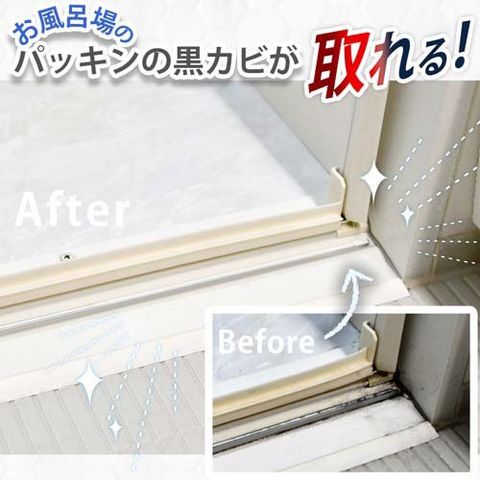 ・カビ除去、水まわりのヌメリ取り。ゴムパッキン、壁、タイル、クロス、目地、ガラスなどに。