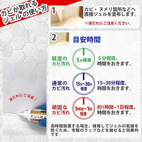 ・カビ・ヌメリ箇所などへ直接ジェルを塗布してください。