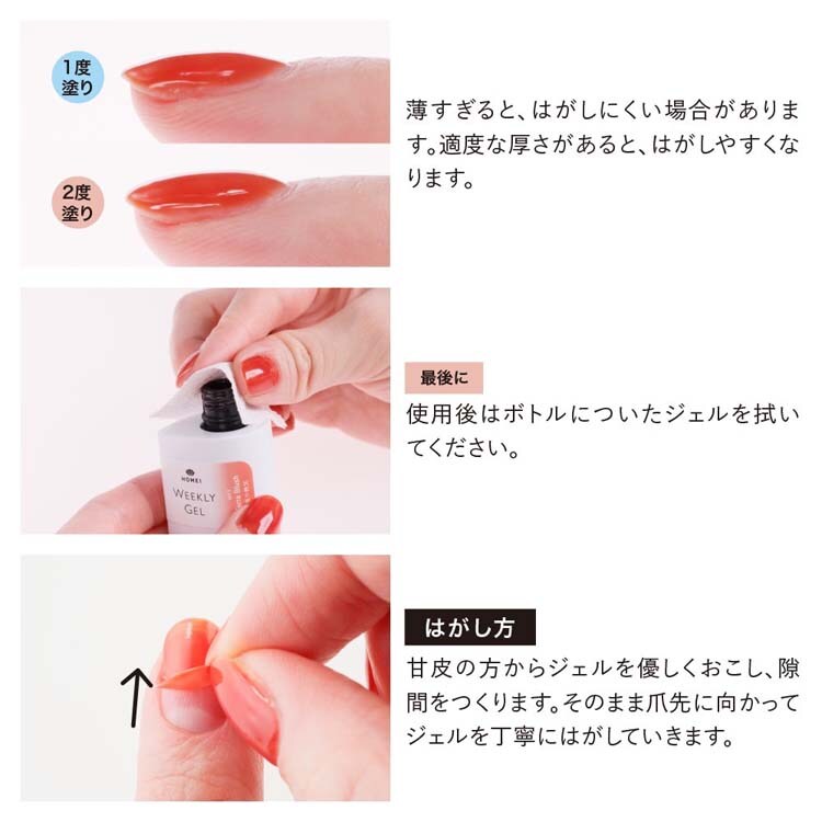 ・はがすときは甘皮の方から指先に向かってやさしくはがしてください。