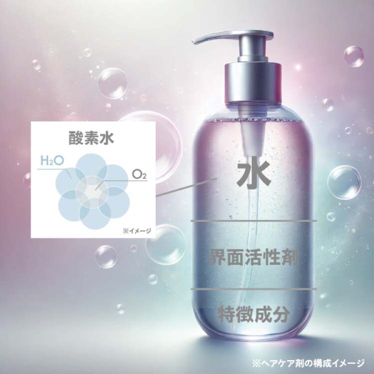 ●特殊製法で空気中に逃げ出さない「酸素水」にコラーゲン※1、ヒアルロン酸※3を溶け込ませた「美容酸素水※2」で髪にうるおいをめぐらせます。