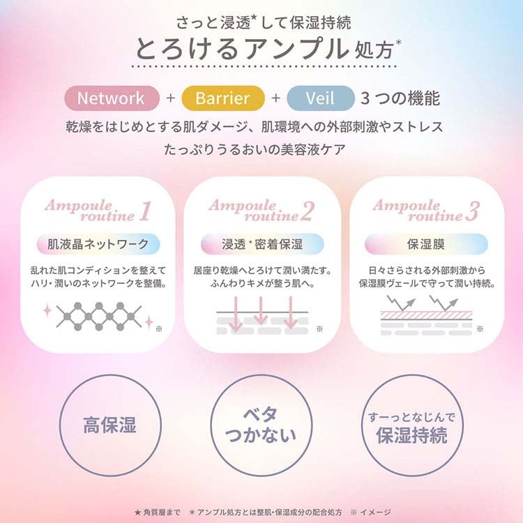 ●3つの機能(network+barrier+veil)により、高保湿なのにすっとなじんで保湿持続。
