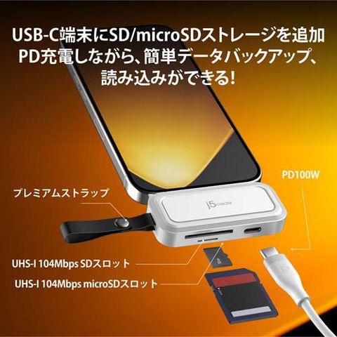 【直付USB-C to microSD/SD/PD充電カードリーダー JCHSD34Wの商品詳細】