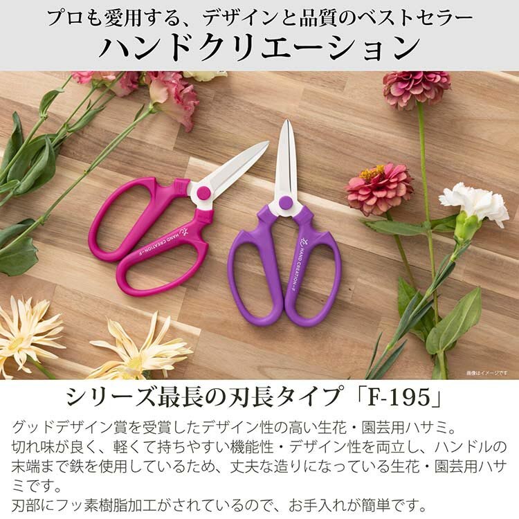【生花鋏 ハンドクリエーション F195 フッ素コーティング イエロー 13147の商品詳細】