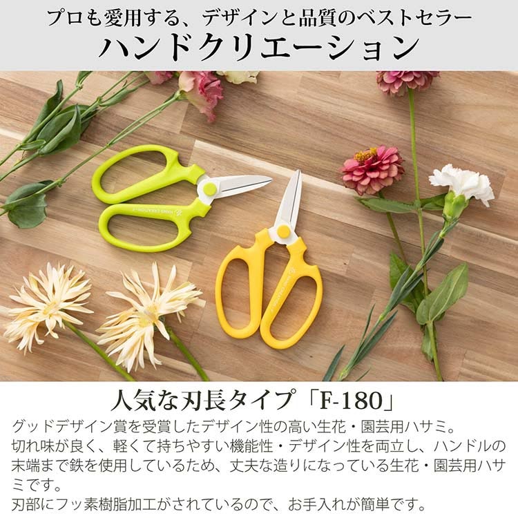 【生花鋏 ハンドクリエーション F180 フッ素コーティング ラベンダー 20143の商品詳細】