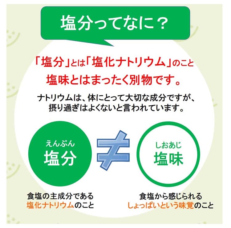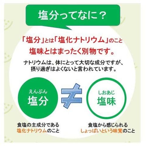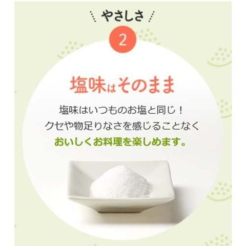 ●いつもと変わらぬ塩味で、塩分(食塩相当量)を50%カットしたお塩です。