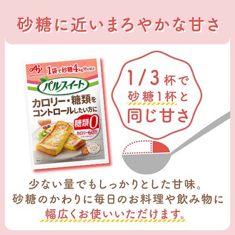 ●アミノ酸から生まれたおいしい甘さで、毎日のお料理や飲み物、お菓子作りに幅広くご使用できるので、カロリーのコントロールに役立ちます。