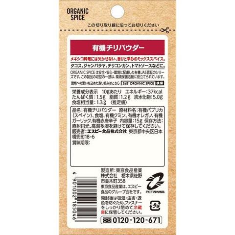 【S&B ORGANIC SPICE 袋入り有機チリパウダーの商品詳細】