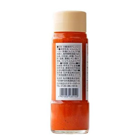 | にんじんペースト、食用植物油脂、なたね油、大豆油、砂糖、りんご酢、塩麹、濃縮レモン果汁、食塩、コショウ、にんにくパウダー |