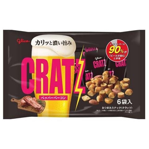 ●ベーコン風味が豊かで、旨みが濃厚なおつまみスナック。発酵した生地に旨みの効いたオイルを浸み込ませました。