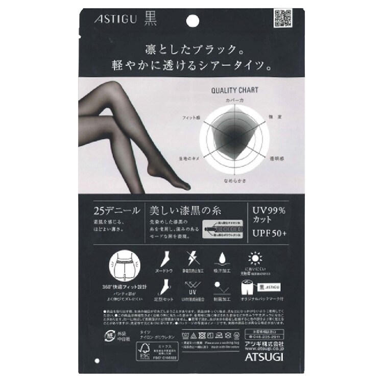 【アスティーグ 黒 クールな漆黒 25デニール シアータイツ L-LL ブラックの商品詳細】