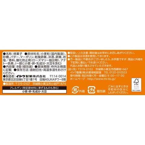 | 小麦粉(国内製造)、砂糖、バター、マーガリン、乾燥卵黄、洋酒、卵黄、岩塩/香料、酸化防止剤(ローズマリー抽出物)、アナトー色素、(一部に小麦・卵・乳成分・大豆を含む) |