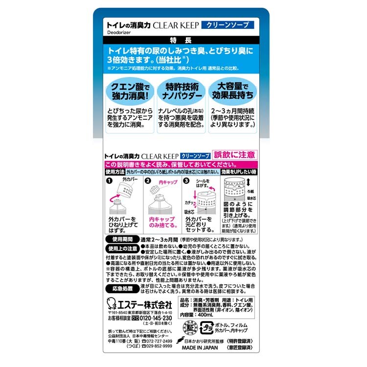 トイレの消臭力 クリアキープ 消臭芳香剤 クリーンソープ (400ml)