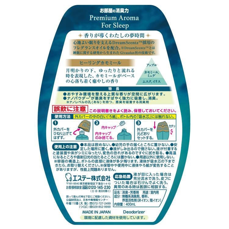 お部屋の消臭力 プレミアムアロマ For Sleep ヒーリングカモミール 寝室用 消臭芳香剤 (400mL)