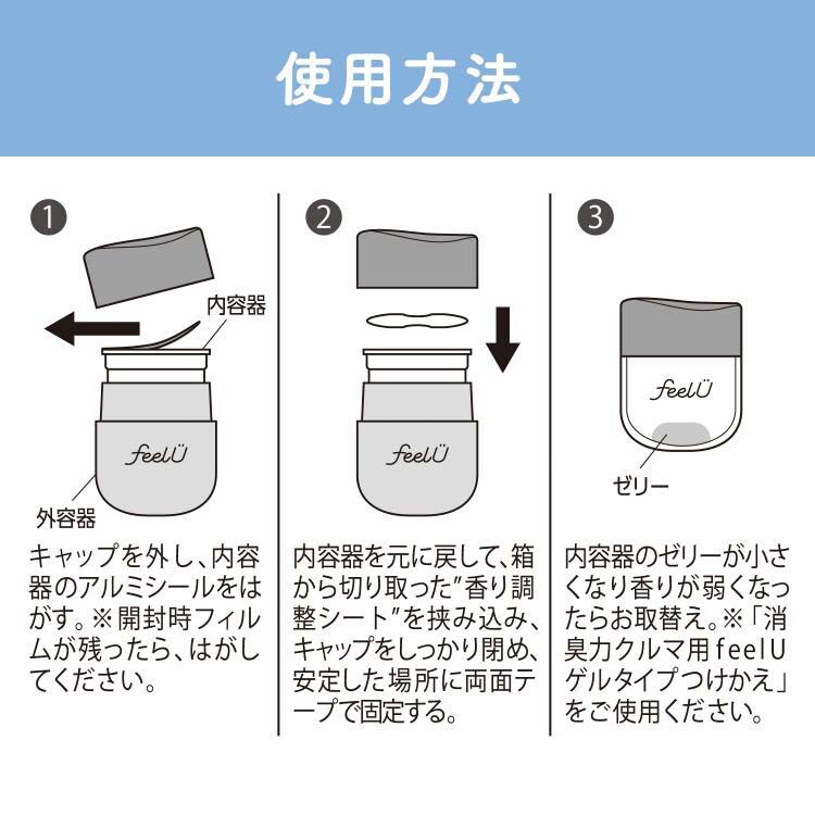 (3)内容器のゼリーが小さくなり香りが弱くなったらお取替え。※「消臭力クルマ用f eel Uゲルタイプつけかえ」をご使用ください。