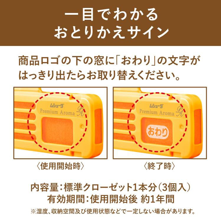 クローゼット用 ムシューダ プレミアムアロマ 衣類用 防虫剤 香り付き 金木犀 (3個入)