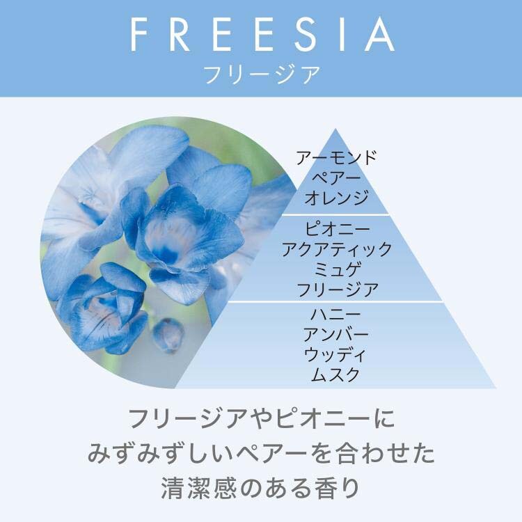 ●香り:フリージアやピオニーなどのフローラルに、みずみずしいペア―を合わせた、澄みわたるような清潔感のある香り。