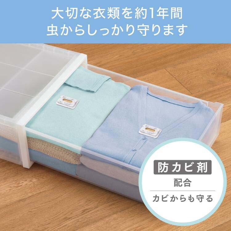 ●防虫成分が約1年間安定した効果を発揮し大切な衣類を虫から守ります。カシミヤ・ウールにも安心してご使用いただけます。