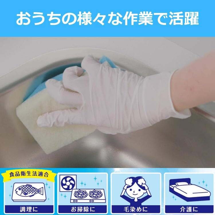 使いきり手袋 ニトリルゴム 極うす手 料理 掃除 介護用 Lサイズ ホワイト (100枚)