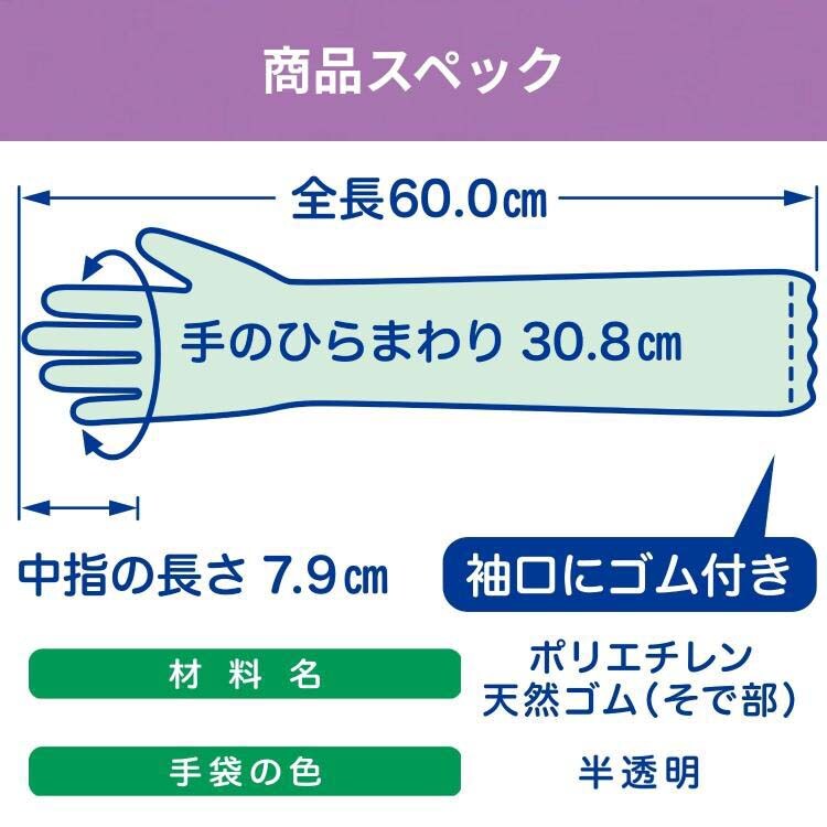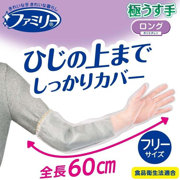 ●腕カバーと一体化した60cmのロングタイプ手袋です。