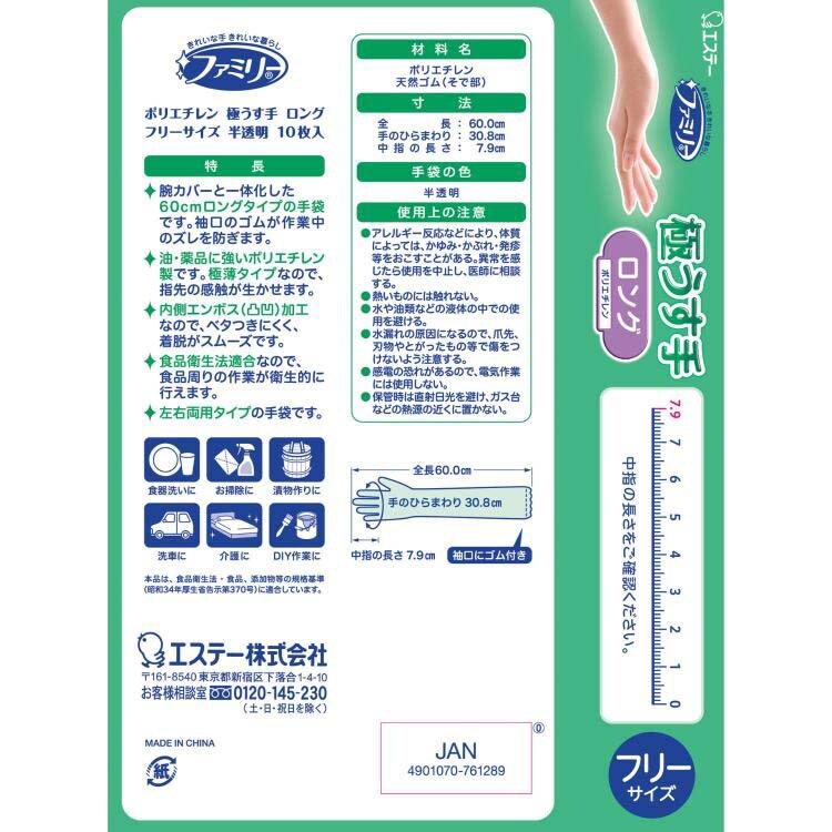 ファミリー ポリエチレン 極薄手 ロング フリーサイズ 半透明 (10枚入)
