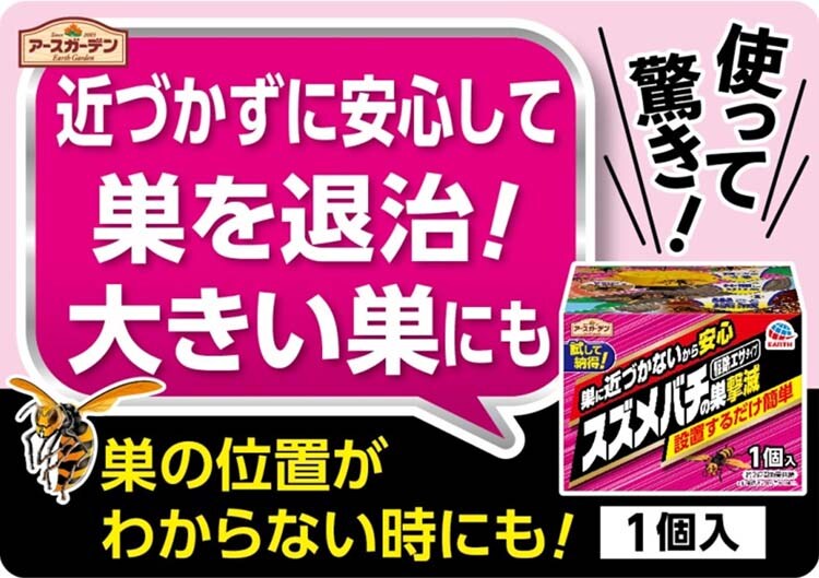 ●約2週間効果持続(使用環境により異なります)。蜂の巣、スズメバチ対策に。スズメバチがいなくなる環境づくりにおすすめです。