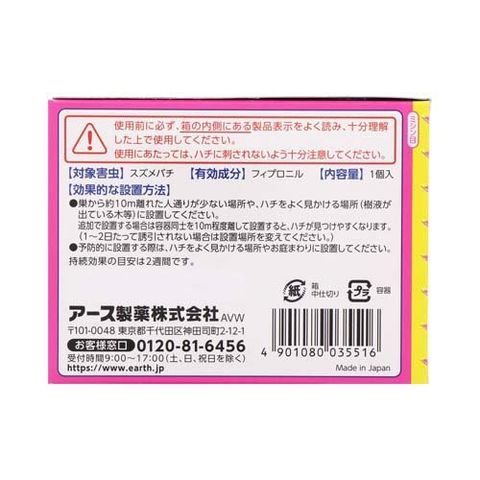 ・周囲の環境やハチの種類によっては誘引されにくい場合があるので、1日から2日たって誘引されない場合は設置場所を変えてください。