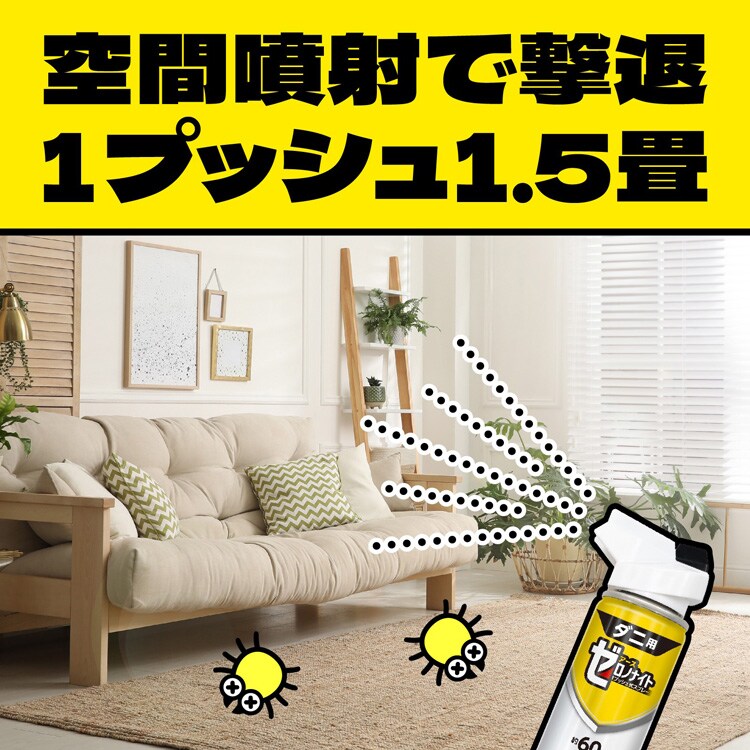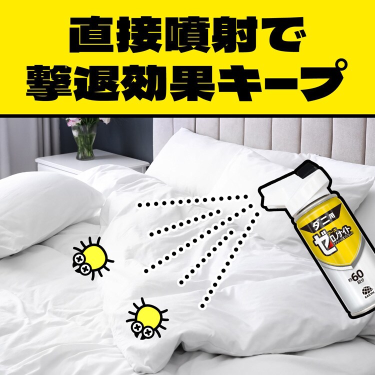 ・ダニが気になる場所(寝具、カーペットなど)に1回ずつ噴射してください。