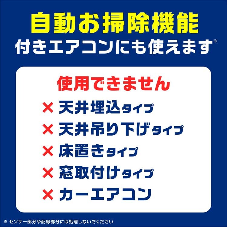 ・自動お掃除機能付きエアコンにも使用することができます。(※センサー部分や配線部分には処理しないでください。)