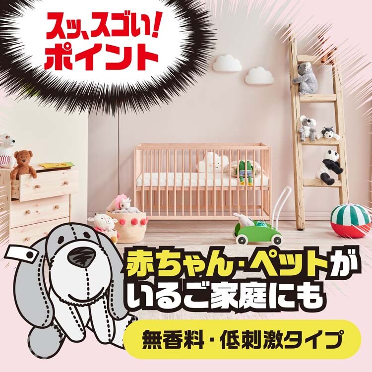 ●お掃除ついでに、平日の忙しい時でも日常生活で簡単にゴキブリ予防(※すき間にプッシュした場合の駆除による発生予防)。日々のゴキブリ対策はもちろん、引っ越しや入居前準備、大掃除にも簡単ワンプッシュ。