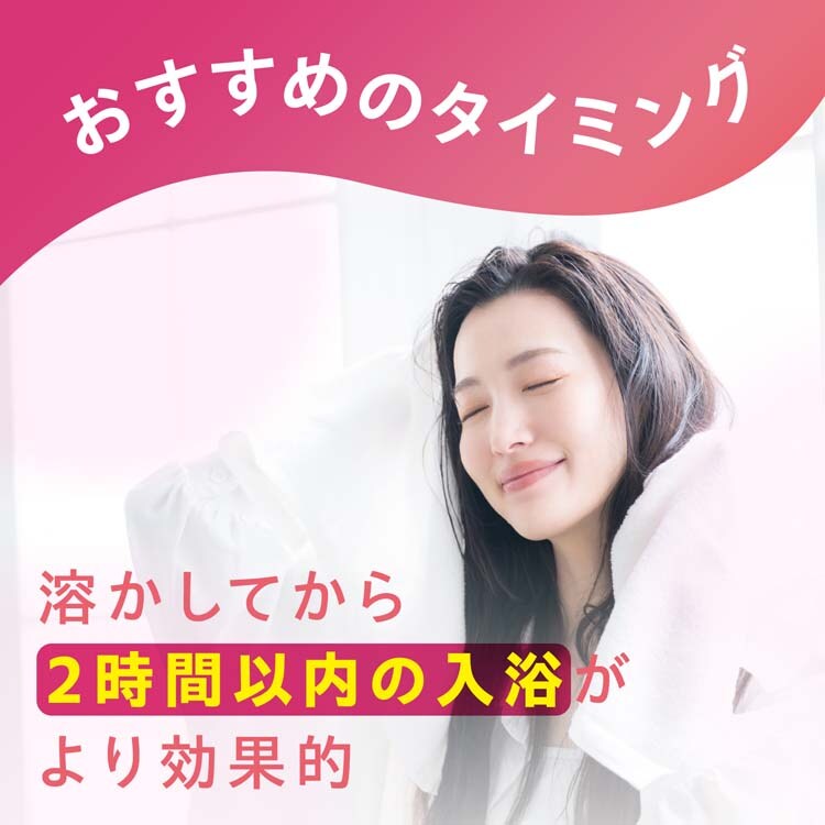 ・浴槽の汚れは早めに浴室用洗剤で落とす。時間がたつと落ちにくくなり、本品の色素が付着して色が付くこともある。