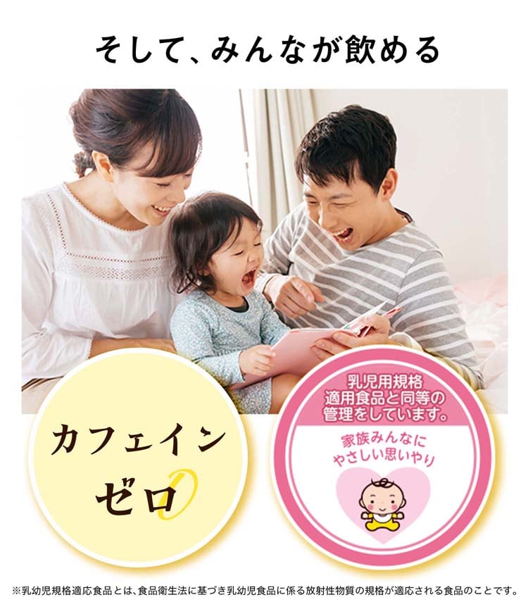 ●食事中にも、すっきりとおいしくお愉しみいただけます。また、カフェインゼロなので、家族みんなに嬉しい飲み物です。