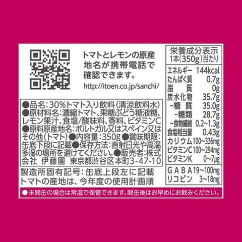 | 濃縮トマト、果糖ぶどう糖液糖、レモン果汁、食塩/酸味料、香料、ビタミンC |