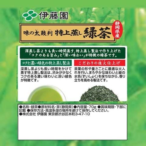 伊藤園 味の太鼓判 特上蒸し緑茶 静岡県産100%使用 チャック付きスタンド袋 (70g)