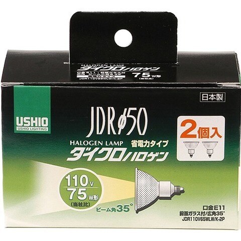 エルパ ダイクロハロゲン 75W形 E11 広角 JDR110V65WLW/K-2P G-169NH-2P (2コ入)