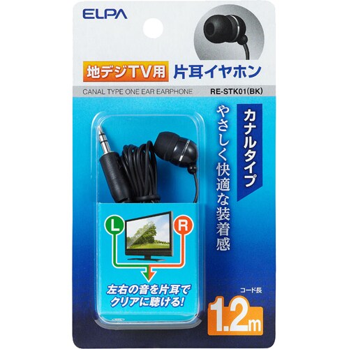 エルパ 地デジ用イヤホン 1.2m RE-STK01(BK) (1コ入)